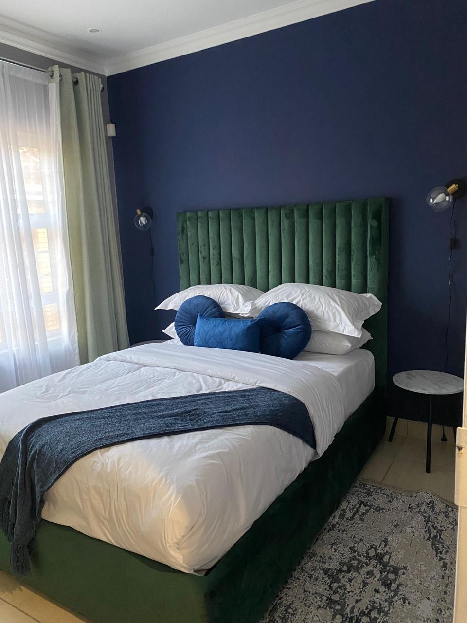 Green Panelled Queen sized bed excluding mattress and side tables R10000