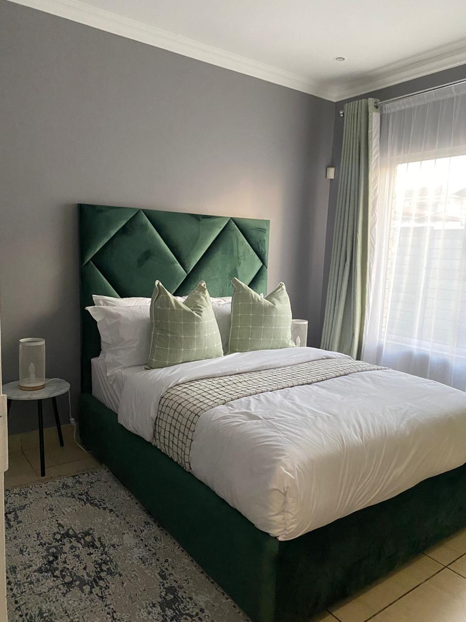 Green 3/4 sized bed excluding mattress and side tables R6500